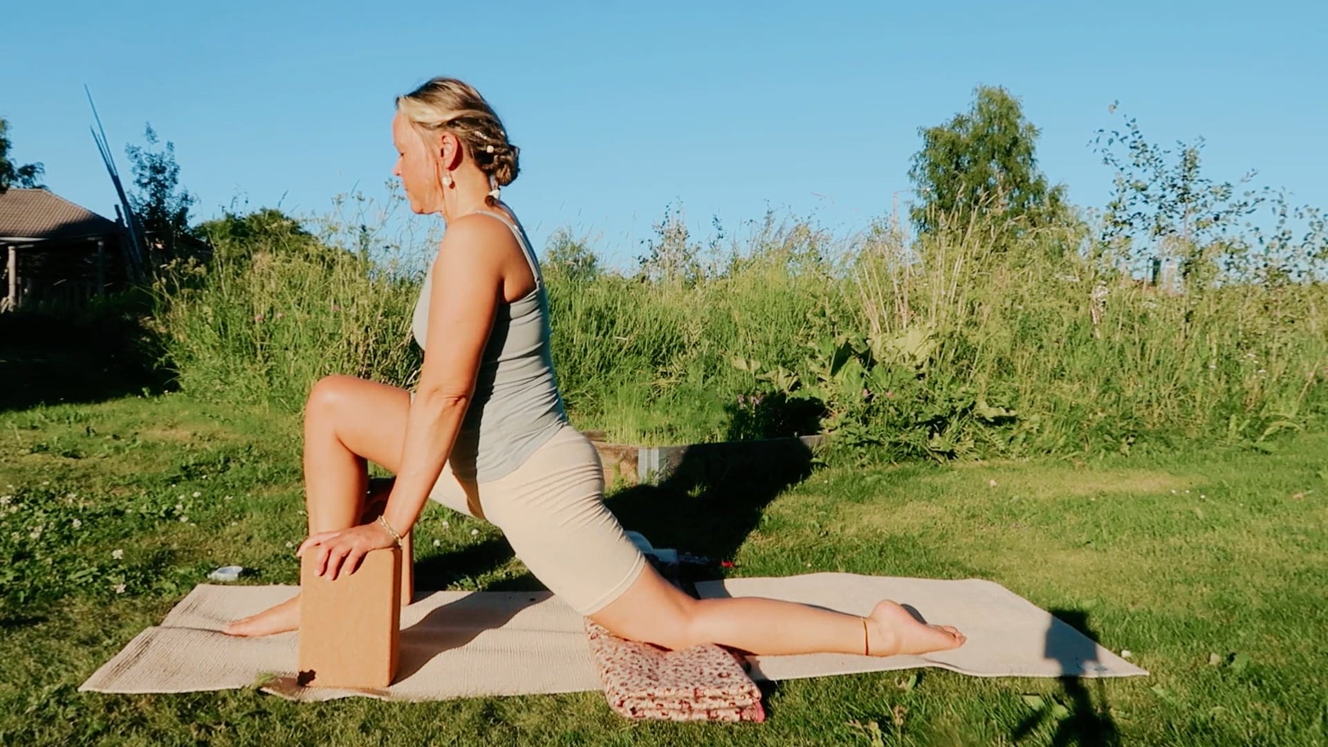 Om du sitter stora delar av din vardag tenderar höfterna att bli stela. Under detta pass får du öppna dina höfter i alla led i enlighet med din kropp just idag. Du presenteras flera olika nivåer och kan på så sätt avancera med tiden ju fler gånger du utövar det här yogapasset. Längden på passet är 24:57 minuter.